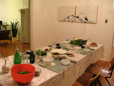 And on this one in particular, we were perfectly content eating homemade Korean food with Jeana and Brad. Jeana made quite a spread – kalbi (marinated ribs), rosgui (thin slices of beef), mussel seaweed soup, lots of side dishes and Korean plum wine.