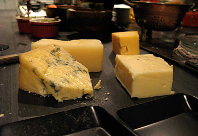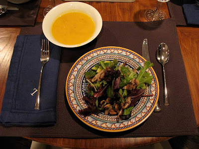 I love being invited to a friend’s house for dinner and this week, my friend Annie had us over for a delicious meal. First we noshed on Raclette while sipping sparkling shiraz. Our main course was a pear and squash soup served with a warm mushroom salad – both super. I’d never experienced this raclette business before but it was delicious and really fun. A great party food. Kind of like fondue on crack….