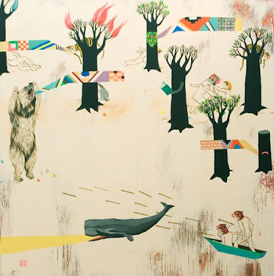 I recently came across the work of LA-based artist Dee Dee Cheriel, via my friend Clare Vivier. Last week, Clare hosted a salon for the artist at her home in Echo Park where she turned her living room and dining room into galleries for the evening. Dee Dee’s paintings are surreal, folksy and quite beautiful in person. See her website for more.