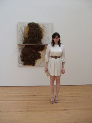 My NY-based BFF Melissa Levin wearing a vintage dress and belt standing in front of an Antoni Tapies painting at the Dia Spring Benefit. Looking mighty cute.