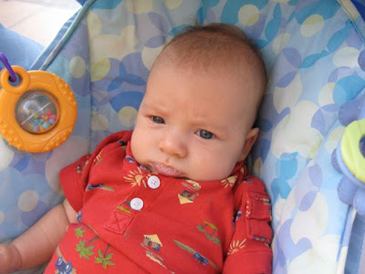 True to form, Alex and I got together with Kate and Pete this past weekend and indulged in some delicious food. This time, Kate made artichoke, cherry tomato, and feta salad with artichoke-pesto crostini, ina’s sauteed corn and an amazingly flavorful grilled leg of lamb. Dessert was a light and perfect raspberry buttermilk cake. In the meantime, Liam showed off his cute baby brother Finn.