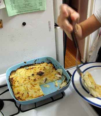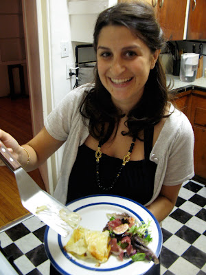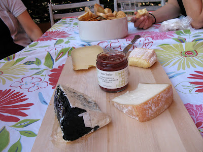 As noted in this post, I spent Friday morning making Julia Child’s Pouding Alsacien (Gratin of Sauteed Apples – a cold dessert) to bring to a frenchy french dinner party, to be followed by a screening of Julie & Julia. While relaxing on lovely hostess Rachel Gandin’s patio, we enjoyed the following delights: an assortment of French cheeses accompanied by Strawberry and Provencal Lavender Conserve (you had me at Provencal), Rose Champagne, Coq Au Vin, Potato Gratin and of course my Pouding Alsacien.
