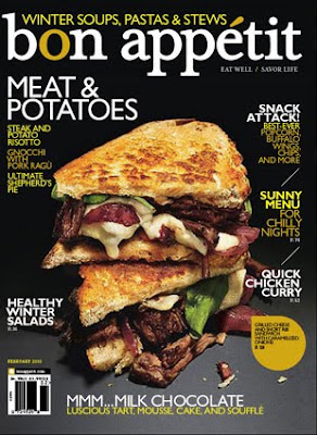 Loving the fact that the new cover of Bon Appetit features the Grilled Cheese and Short Rib Sandwich with Carmelized Onions from Joan’s On Third. Recipe HERE. How divine does this look?