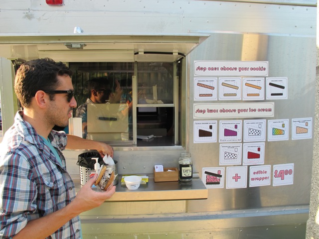 I’m thinking about it, writing about it and eating it. Summer is here, yes, which makes me recall hot days tempered by icy cool gelato. I’ve been fantasizing about making mulberry ice cream from scratch with berries from my friend’s farm. I also know that this renewed interest is in no small part due to a run in I recently had with Coolhaus, the roving ice cream sandwich truck.